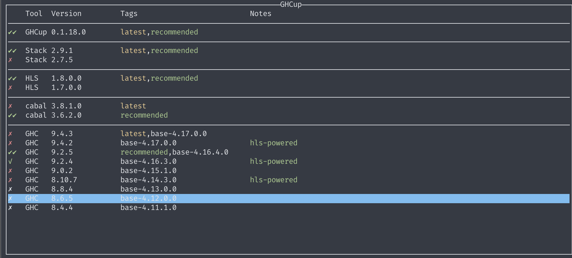 $ ghcup tui