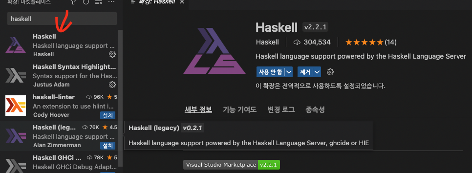 vscode ๋ฅผ ์ฌ์ฉํ ๊ฒฝ์ฐ Haskell ํ๋ฌ๊ทธ์ธ์ ์ค์นํฉ๋๋ค.