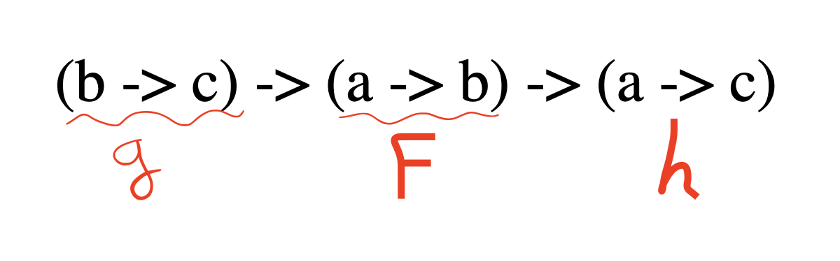 (.) :: (b -> c) -> (a -> b) -> (a -> c)